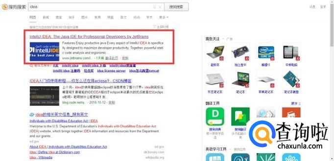 搜狗搜索idea,进入idea官网。如图,第一个便是idea的官网。