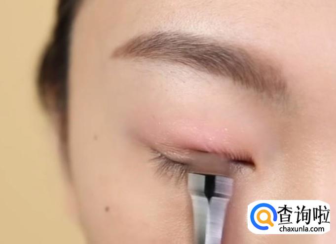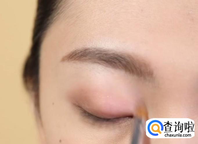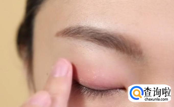 化好底妆以后,使用手指蘸取不带闪的裸色眼影给眼部打底。可以使用手指或者眼影刷涂眼影,手指上妆比眼影刷更服帖。