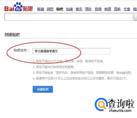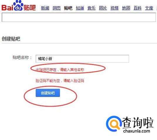 然后再更换一个贴吧名称,然后再点击创建按钮即可,如下图所示: