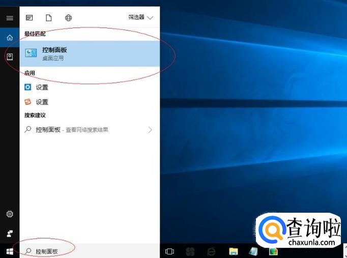 如图所示,搜索框输入"控制面板"。Cortana(小娜)显示搜索结果,点击"最佳匹配→控制面板"项。