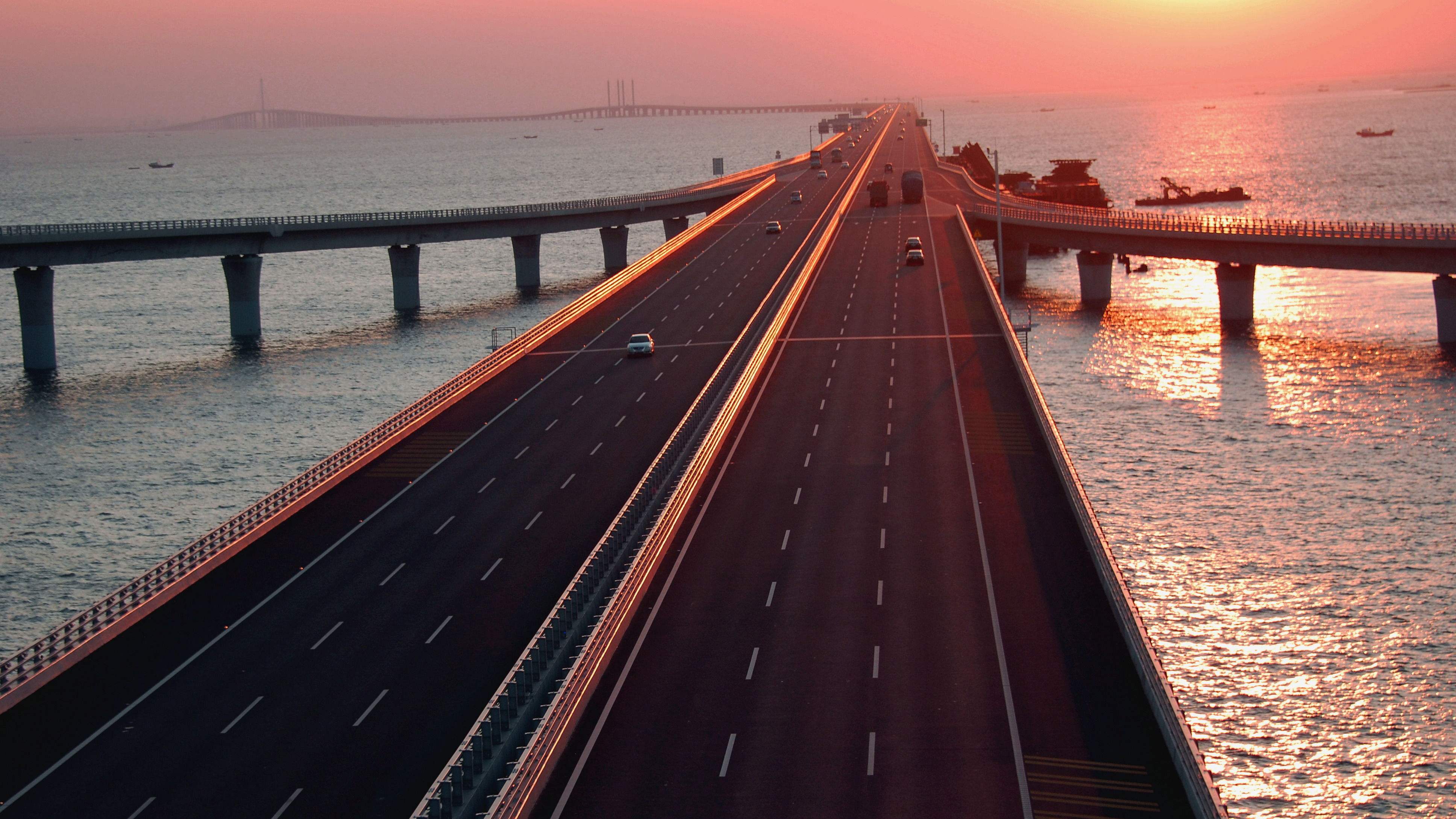从结构力学的角度来看,有弯度明显更稳定,跨海大桥受到的海浪冲击远远大于普通桥梁,设计成曲线,能让水流通过引导减少对桥梁造成的伤害。而且海底并不是平坦的,把桥修成弯曲的形状能避开这些起伏的地形,保障桥梁的稳定和安全。另外还能防止司机出现驾驶疲劳。