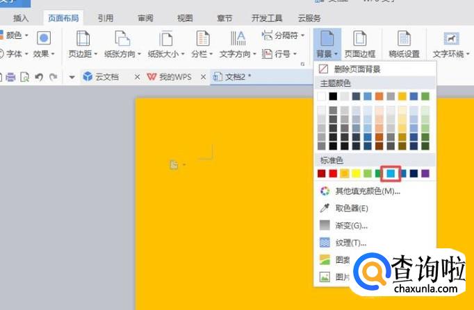 之后我们点击工具栏中背景,弹出的界面,我们点击选中一个我们想要更改的颜色;