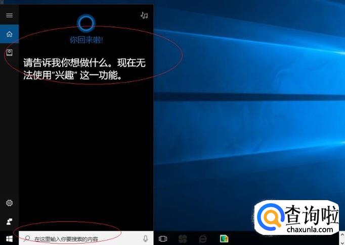 启动Windows 10操作系统,如图所示。点击任务栏搜索框,开始使用Cortana(小娜)智能语音助理。