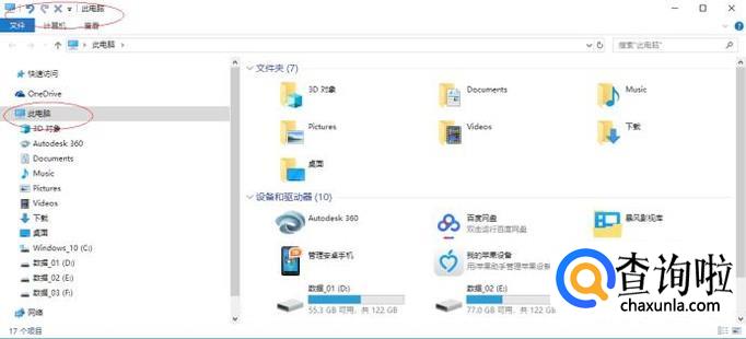 唤出"资源管理器"程序窗口,如图所示。展开左侧树形目录结构,选中"此电脑"文件夹。
