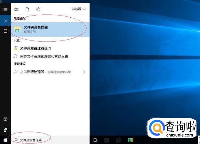 如图所示,搜索框输入"文件资源管理器"。Cortana(小娜)显示搜索结果,点击"最佳匹配→文件资源管理器"项。