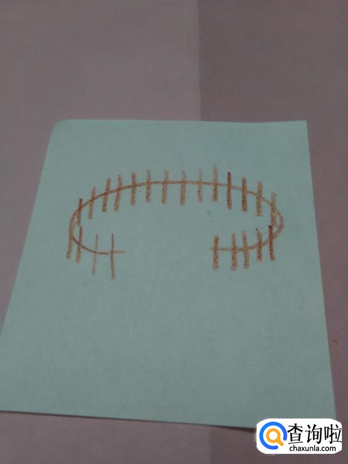 先用棕色笔在纸上画一个开口的椭圆形,表示栅栏的横杆。