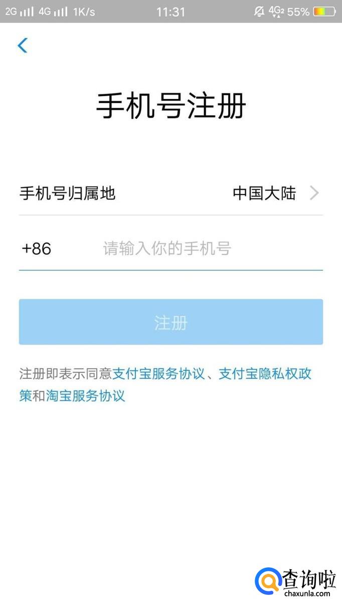 进入之后,输入手机号码,完成注册,如图所示。