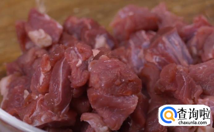 现在来处理馅料,把清洗过的牛腱肉切成粒,再加入酱油、橄榄油和盐,抓匀后腌制15分钟。