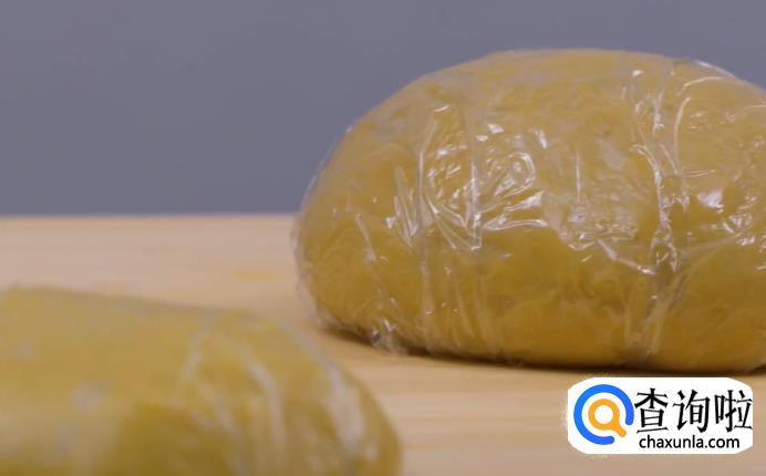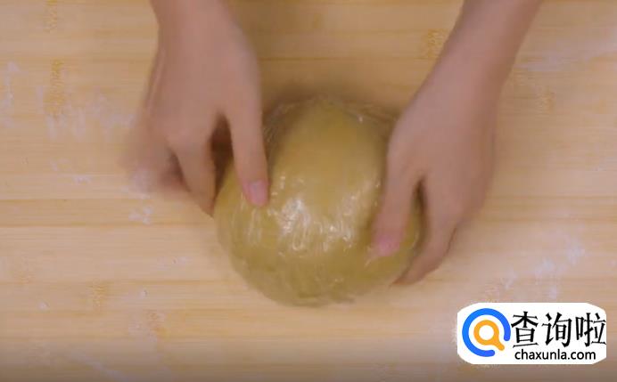 混合均匀之后,揉成面团,水油面团就做好了,用保鲜膜包裹好,放在一旁待用。