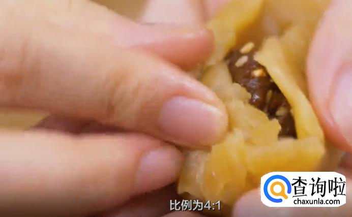 现在开始制作馅料,牛肉馅用白芸豆茸包裹住牛肉粒,比例为4:1,而玫瑰馅是将白芸豆茸混合玫瑰,比例也是4:1。