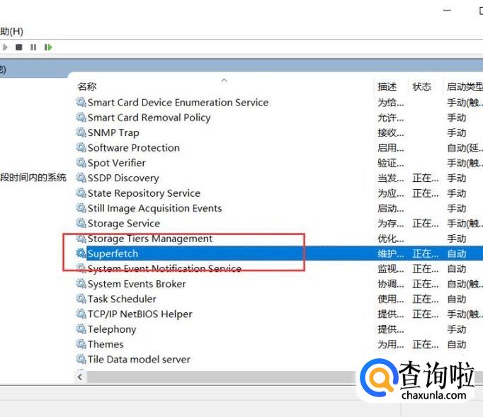 接下来,在打开的Windows服务列表中,找到“Superfetch”服务选项,双击打开该项服务设置。