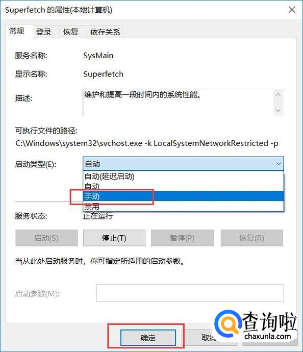 在打开的服务选项设置页面中,将该项服务设置为“手动”选项,并点击页面底部“确定”按钮。