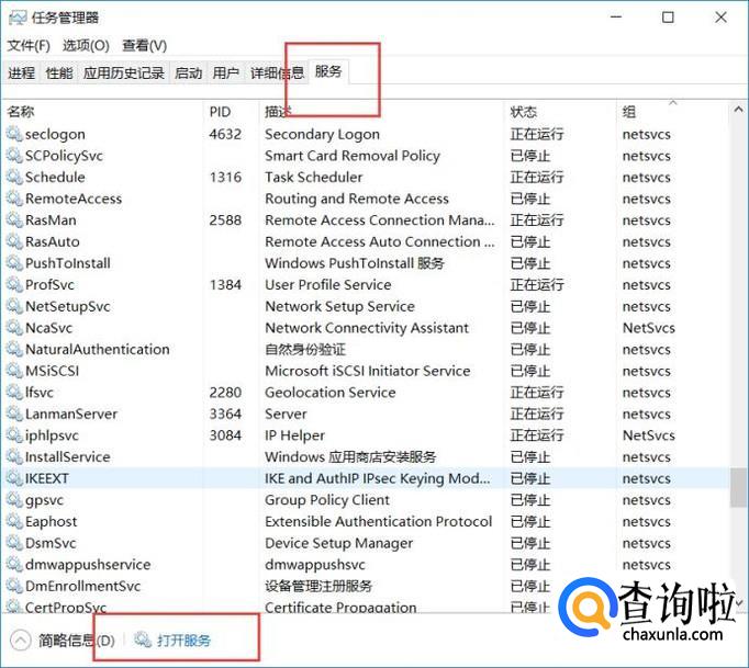 打开任务管理器页面之后,点击“服务-打开服务”选项。