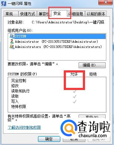 在出来的属性页面点击“安全”,出来如图所示界面,可以看到,现在的用户是everyone,然后权限 “完全控制”和“修改”是没有的,这就为什么我们现在没有权限删除这个文件了。