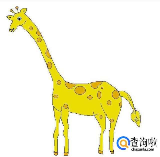 最后我们给长颈鹿涂抹上颜色,即可绘制完成,身体以涂抹上黄色即可,斑纹用深黄色或橙色都可以,如图所示。儿童按照小编的方法可以比较容易的画出长颈鹿。