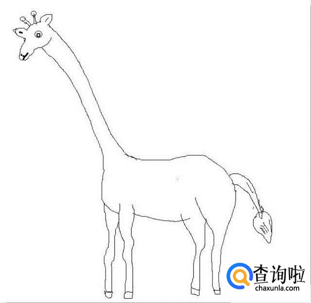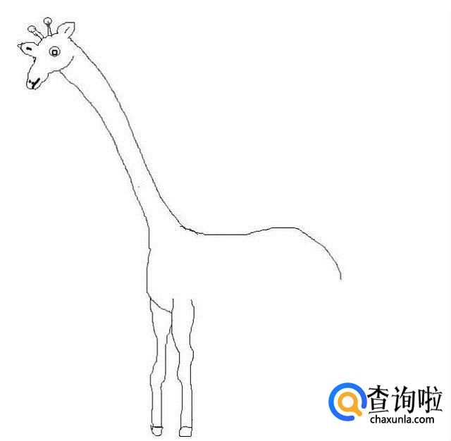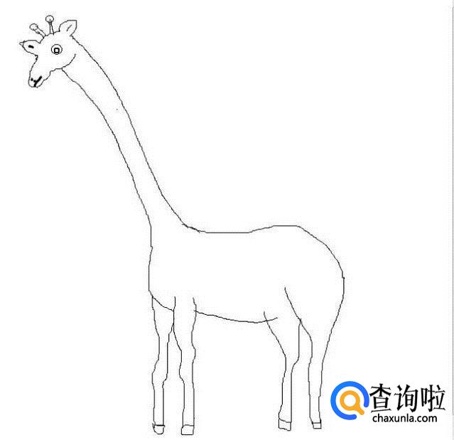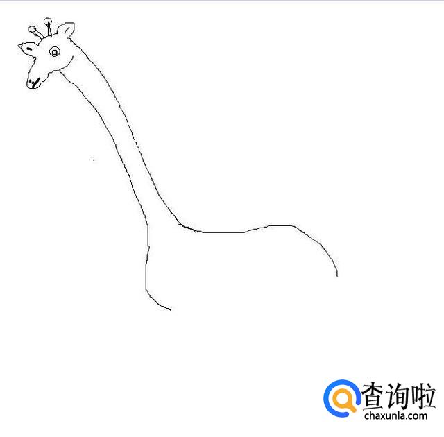 之后我们画出长颈鹿的脖子,需要细长。保证纸张能够将完整的长颈鹿画出来的情况下,脖子尽可能的长,并画出身体一笔可以画出来的部分,如图所示。