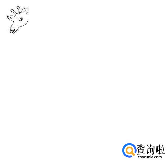 首先我们先将长颈鹿的头部画出来,头部画在纸张的角落上,尽可能的画的小一点,保证体现长颈鹿脖子的长。我们简单的画出头部的形状、耳朵、眼睛、嘴巴即可,如图所示。