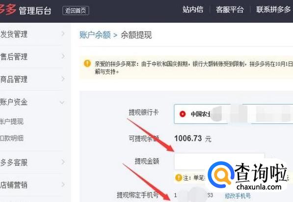 拼多多平台提现一般是2-4个工作日到账,提现显示银行受理完成以后与银行会有一定的延迟,需要耐心等待银行打款至提现银行卡。