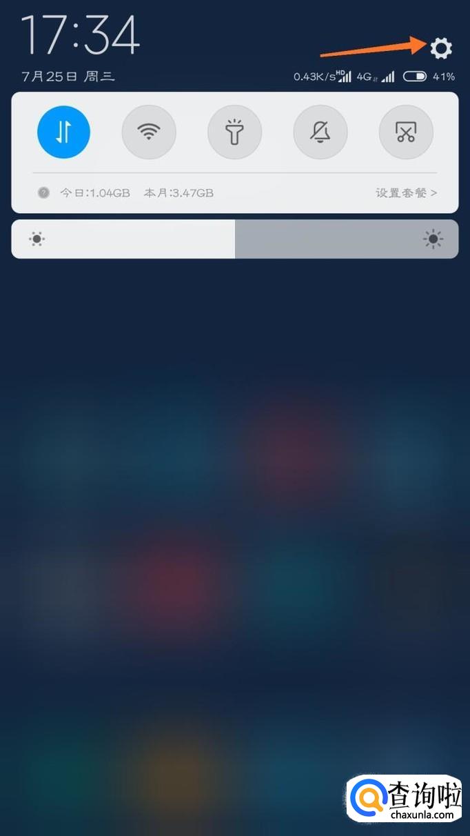 首先打开手机的系统设置,从桌面或者状态栏右上角的小图标都可以进入。