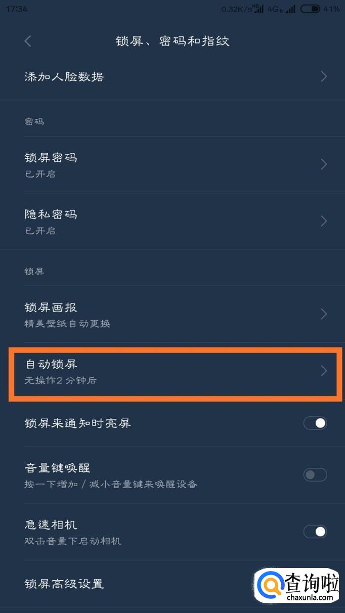 然后屏幕向下拉,我们需要找的是锁屏、密码与指纹,点击进入。