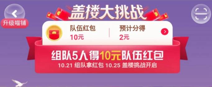 2019淘宝双十一组队盖楼活动需要5级以上,无论是组织者还是参与者均需收集喵币升级至5级才可以联手盖楼哦!从去年的淘宝双十一活动可以看到,组队是赢得奖励最快的途径,因此今年淘宝双十一盖楼也是瓜分20亿红包的重要利器。