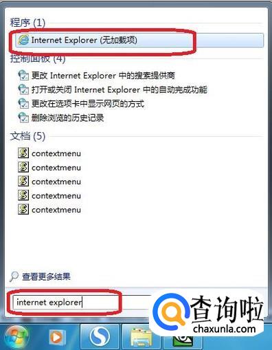 如果在开始菜单里没有找到“IE浏览器”图标,就在下面的搜索框搜索输入“internet explorer”字样,就能搜到“IE浏览器”。