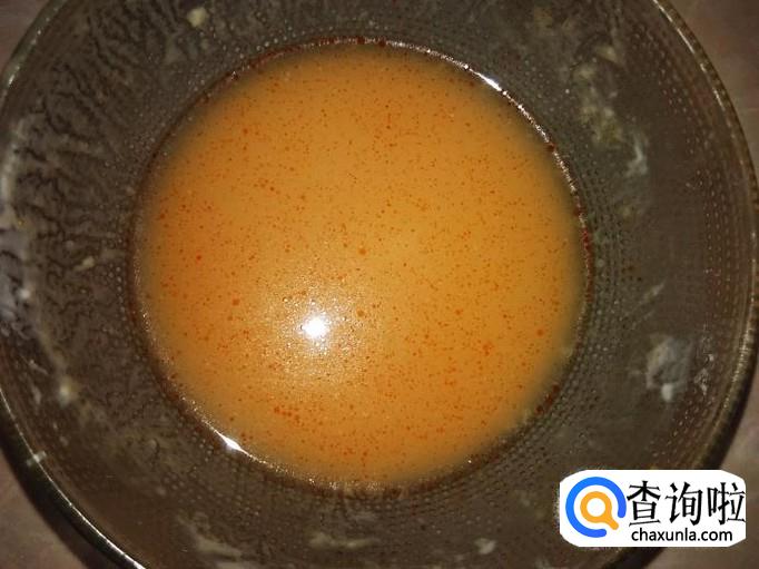 腌制鱼剩下的调料加小半碗水搅拌均匀。
