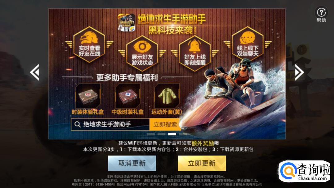 给大家提示一下,下载好之后,打开游戏的时候,系统会提示让你更新系统,我们选择“取消更新”。