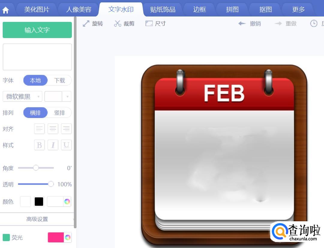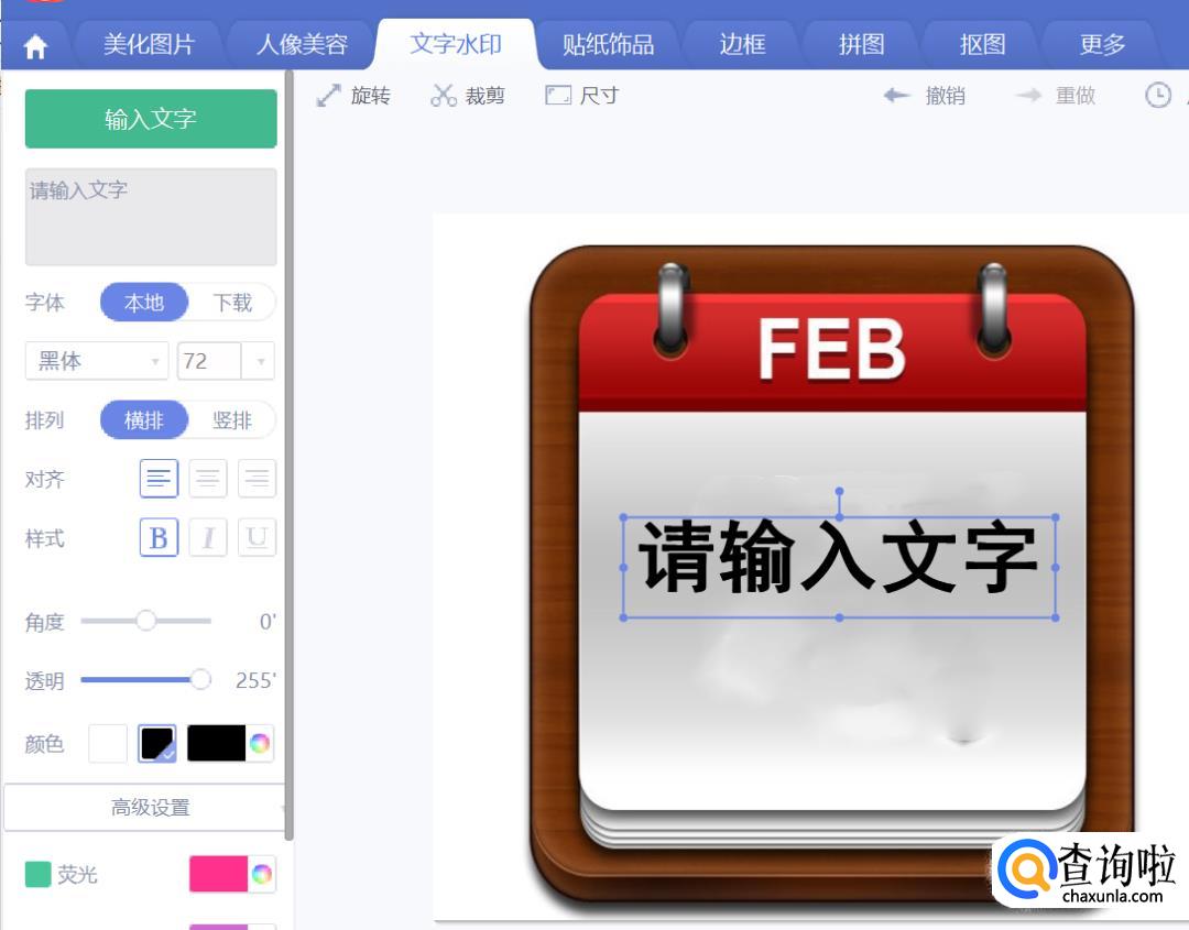 接着,我们点击文字水印,可以看到有输入文字功能,点击输入文字会显示文本框。