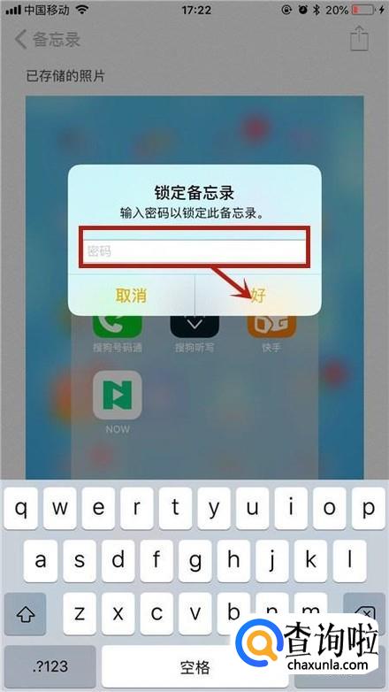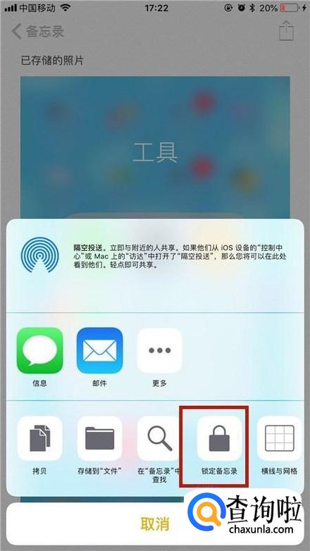 接着点击锁定备忘录,如下图所示。