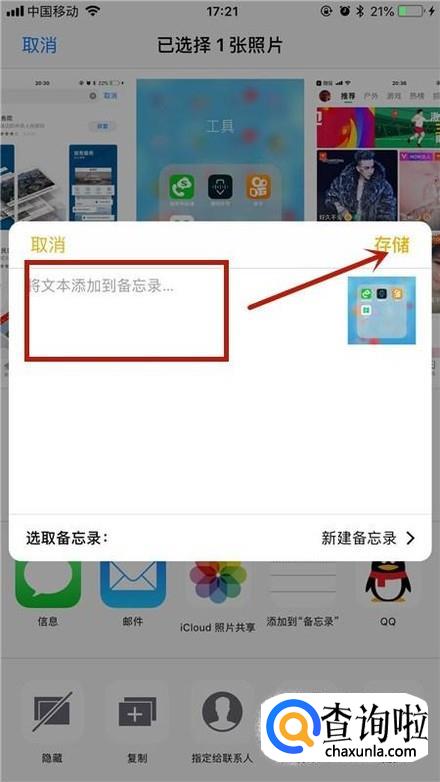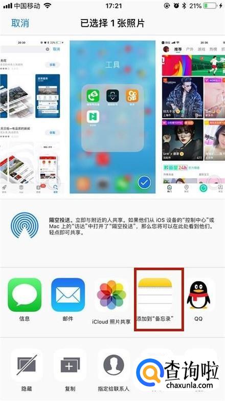 然后点击添加到备忘录,如下图所示。