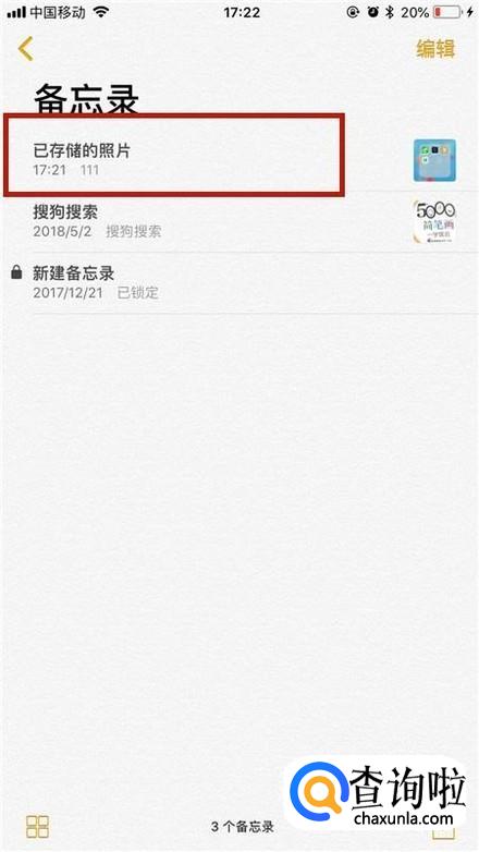 接着点击我们刚才创建的备忘录,如下图所示。