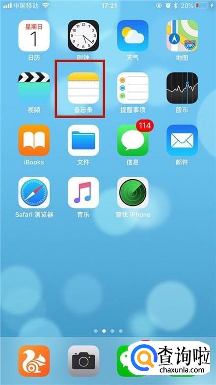 然后在我们的手机桌面上找到备忘录并点击它,如下图所示。
