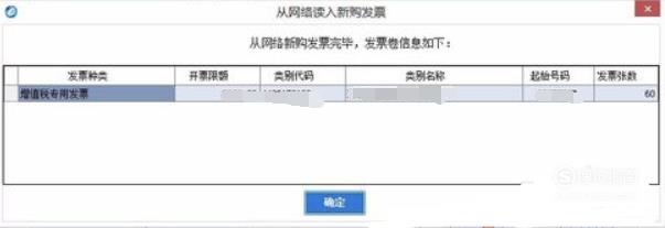 最后,会弹出“从网络读入新购发票”的对话框,在这个对话框里面会显示发票的信息,我们单击“确定”就可以了。