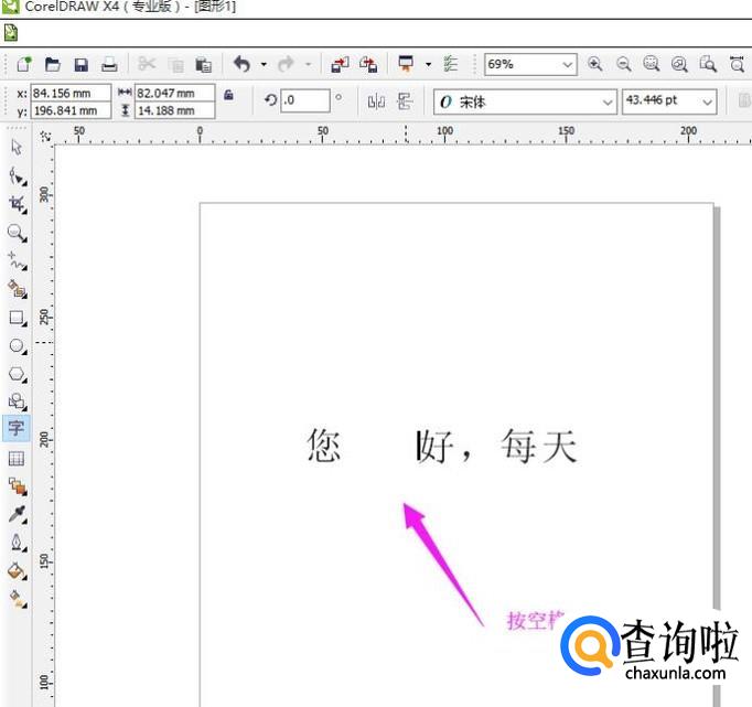 最为简单的调整文字间距方式,就是按键盘的空格,2个字之间按下,就可以了,很简单。