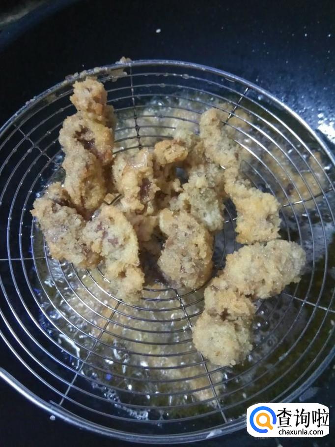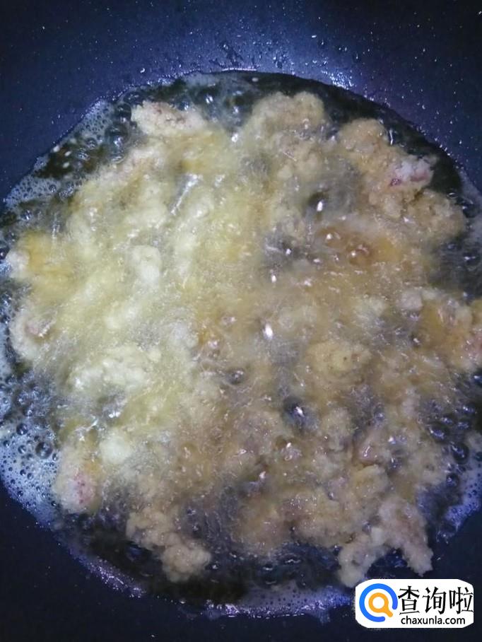 炸至金黄,捞出装盘。