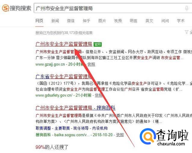 进入之后,搜索“广州市安全生产监督管理局”,点击并进入,如图所示。