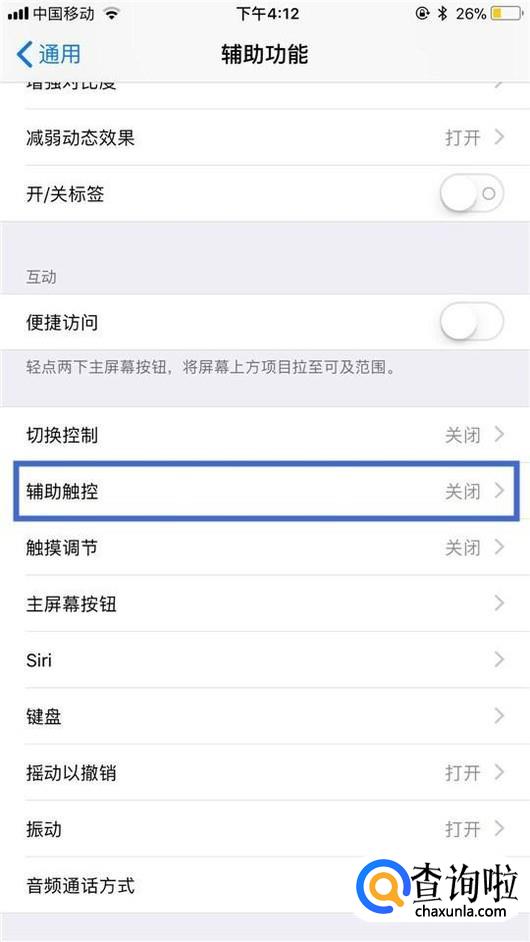 然后点击辅助触控,如下图所示。