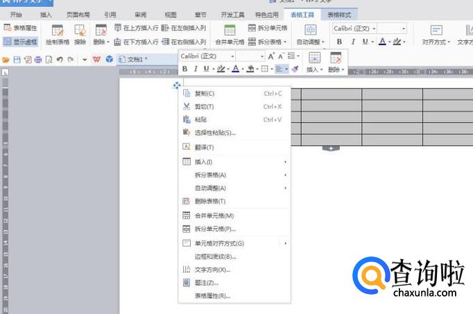 插入表格后,选中表格点击鼠标右键,选择“表格属性进入”,或选中表格在“表格工具——表格属性”进入。