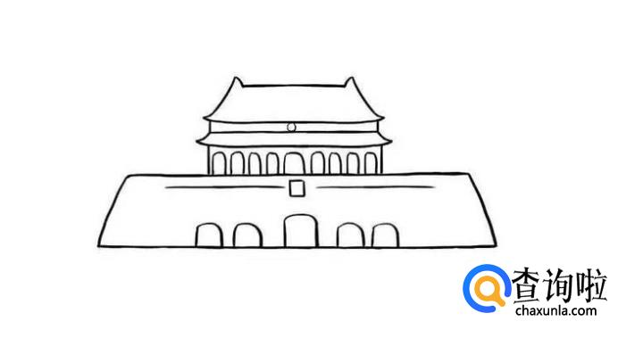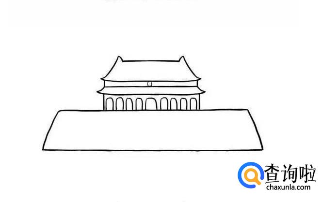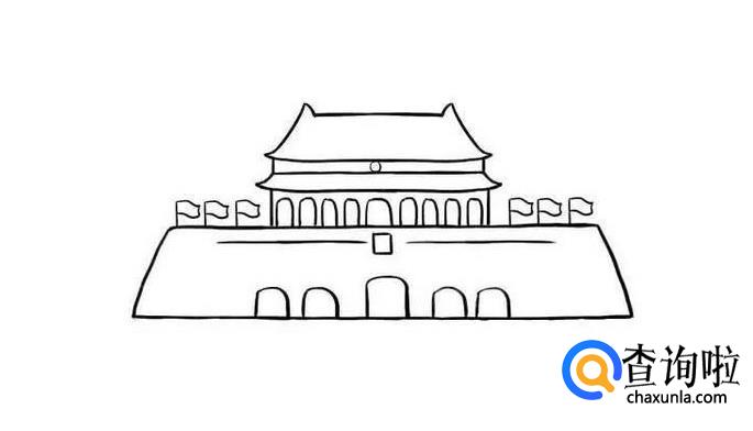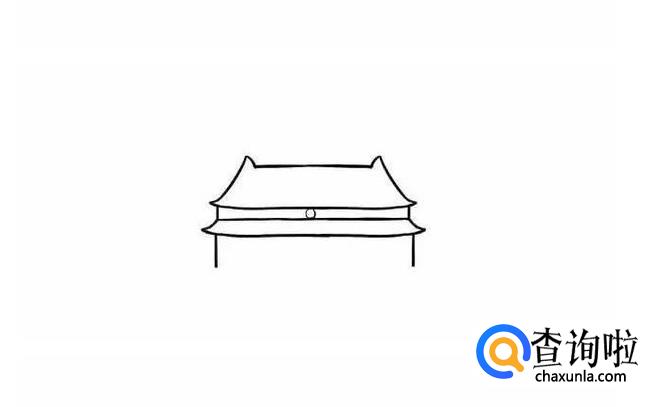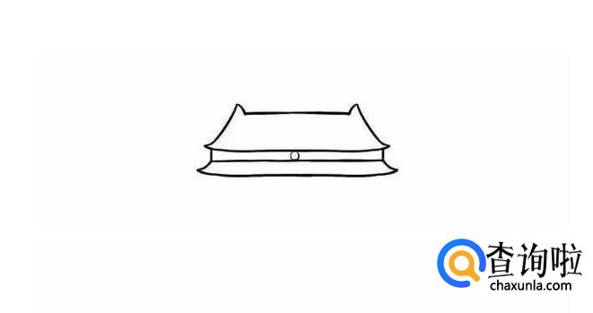 先画出天安门的屋顶,两边要画的翘起来。