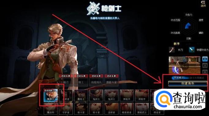 在创建角色界面,选择带有“活动”字样的角色后,点击右侧职业预览的“创建”角色按钮。