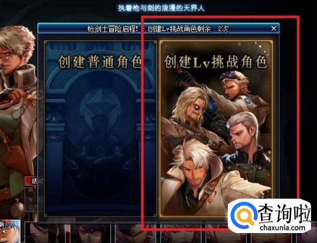 在创建角色的模式选择中,选择“创建LV挑战角色”,拟定角色名称后点击“创建”按钮即可。