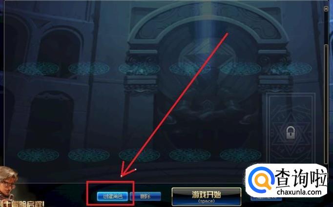 首先,打开并登录地下城与勇士,在角色选择界面,点击正下方的“创建角色”按钮。