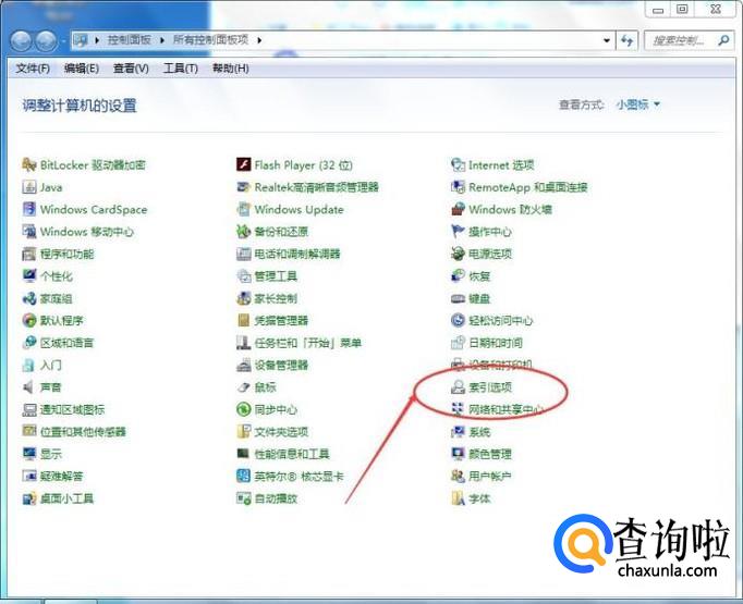 打开【控制面板】,然后找到【索引选项】,如下图所示: