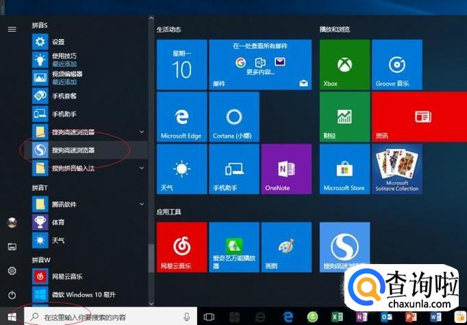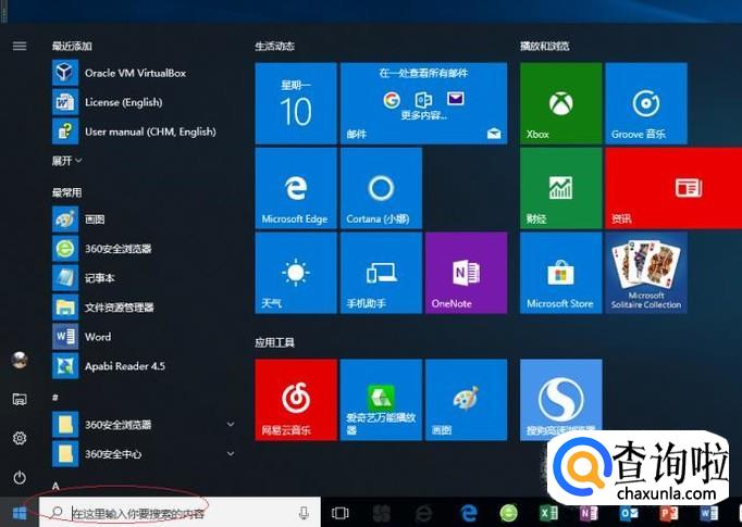 启动Windows 10操作系统,如图所示。点击任务栏"开始"按钮,用于弹出开始菜单。