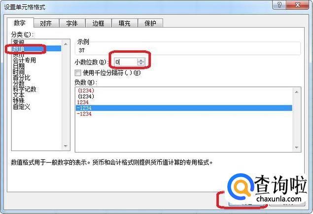 选择数字分类为“数值”,设置小数位数为0,点击确定就可以了。
