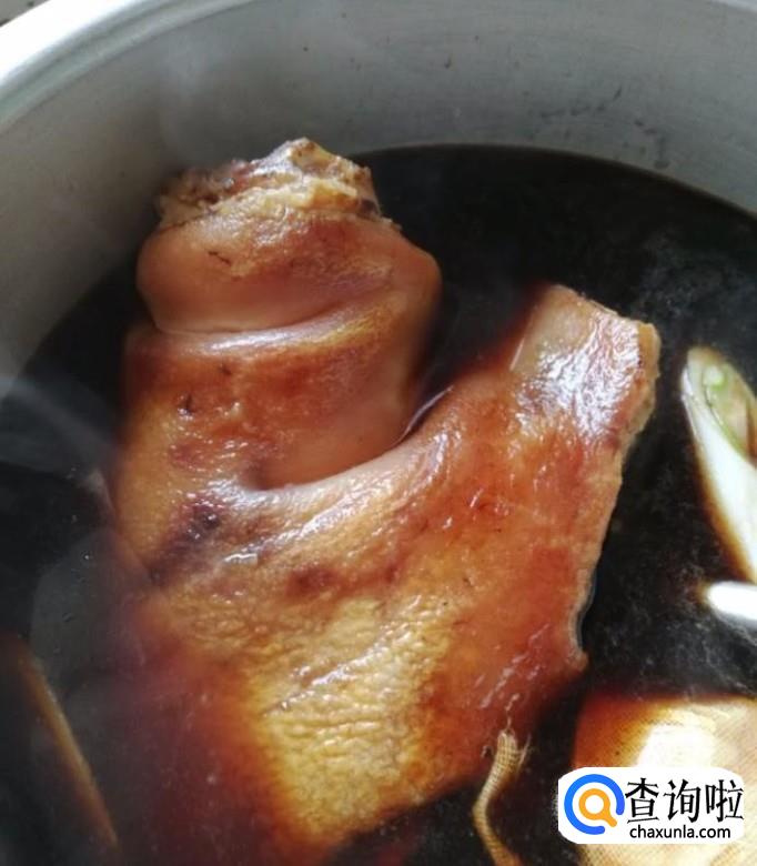最后煮好以后关火浸泡30分钟,捞出装入盘中,美味的红烧猪肘就制作完成啦!
