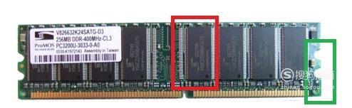 红色方框的内存芯片,DDR1 代是大片,DDR2 和 DDR3 是小片。