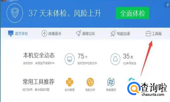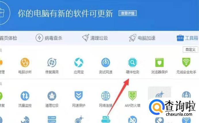 若是要查看自己电脑的内存条,可以使用安全软件查看,打开电脑管家,点击“工具箱”。