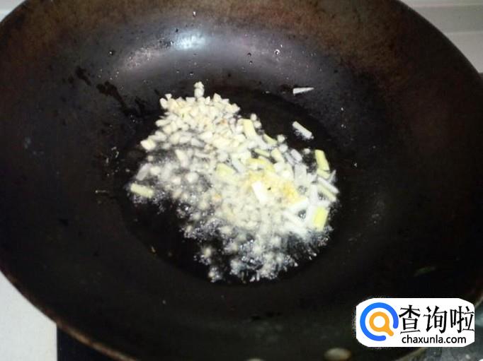 锅内放入油加热,油四,五成热时,放入葱,姜,少量蒜末爆锅,留一部分蒜末待用。